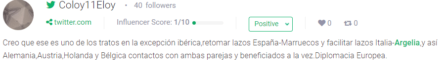 Cabe destacar que la percepción que se tiene de esta crisis por parte de las Redes Sociales parte en gran parte desde un punto de vista ideológico pues en la gran mayoría de los tuits analizados no se hace mención a los orígenes de esta crisis ni a las causas de sus inicios, la comunidad de Twitter en su mayoría hace menciones sobre las medidas adoptadas por Argelia en contra de España y que afectan directamente a la economía.
