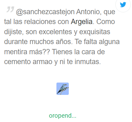 No hace falta buscar la pistola humeante que demuestre la existencia de una gravísima crisis diplomática, además de la consiguiente bronca hacia el gobierno tanto desde los propios socios como desde la oposición por la manera en que se está llevando este asunto. Como era de esperar, el gobierno argelino amenaza con rescindir el suministro de gas con Madrid si el gobierno español lo destina a un objetivo distinto al pactado (ES), con la vista puesta en la posibilidad de que España pueda exportar el gas argelino a su archienemigo marroquí.